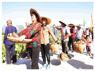 2024-11-14村民们挑着香芋赶到会场。 (记者陈娟 通讯员苏桂 文/摄)近日,桂林平乐县青龙乡举办第五届香芋采收节,通过香芋采收、香芋争霸赛、挑芋头接力、抛芋头、套芋头等系列活动,让当地村民在欢快的活动中...