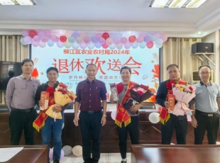 2024-11-14岁月映初心,荣退颂芳华,11月4日,柳江区农业农村局为2024年退休的干部职工举行欢送会。局党组书记、局长廖庆甫及局领导韦祖耿、韦宝珠为退休同志送上鲜花和纪念品,祝贺他们光荣退休! 廖庆甫发...