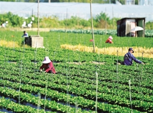 2024-11-082日上午,温暖的阳光洒满大地。067县道经往柳江区成团镇方向,公路两旁随处可见村民在绿油油的草莓田里忙着管护的身影。一垄垄草莓苗在阳光下生机勃勃。 村民在草莓田里忙碌 “水肥充足,护理到位...