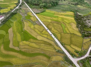 2024-10-3110月26日,上思县南屏瑶族乡常隆村百马屯百马梯田稻香四溢、田野铺金。瑶族群众身着节日盛装载歌载舞,与来自全国各地的游客欢聚一堂,共享丰收喜悦。 航拍百马梯田。 民族歌舞表演。 百马...