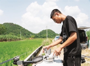 2024-10-17葱郁的水稻与蓝天白云勾勒出一幅田园画卷,偌大的稻田里却少见人影。10月8日,在鹿寨县平山镇青山村,伴随“嗡嗡”的轰鸣声,只见一架农业无人机起飞,掠过稻田上方喷洒农药,不到10分钟就完成约20亩...