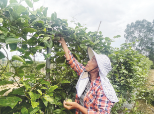2024-09-03果农在采摘黄金百香果。 (廖彦清 摄) 近日,在江南区延安镇那齐村黄金百香果种植基地,一个个金黄色的百香果散发着诱人的香气,垂挂在藤蔓之间。 每天晨曦初露,果农们踏...