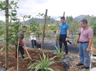 2024-07-086月27-28日,广西蒙山砂糖桔试验站专家组组长广西农业科学院植物保护研究所副所长、研究员邓铁军带领专家组一行4人到蒙山指导灾后生产。 专家组一行先后到文圩镇文圩村和道义村了解砂糖桔果园受灾...