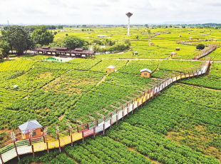 2024-06-24盛夏时节,横州市漫山遍野的茉莉花长势喜人,沁人心脾的茉莉花香扑鼻而来,许多游客拿起手机与鲜花合影,留下夏天的美好回忆。 在横州市校椅镇石井村中华茉莉园,花农穿梭在花田中采收茉莉花。南...