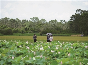 2024-06-24蓝蓝的天上白云飘,白云下面荷花俏,又到一年赏荷季。6月22日,记者在银海区福成镇端田村鹤祥生态观光家庭农场的荷花种植基地看到,连片荷花竞相开放,随风荡漾。 基地里,市民游客纷纷在...