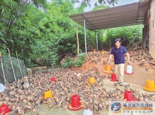 图为何定意在给鸡苗喂饲料。 谭海东 摄 □ 防城港日报全媒体记者 曾 悦 通讯员 谭海东 种植葡萄、建羊舍养羊、林下养鸡……东兴市江平镇黄竹村村民何定意身残志坚,不等不靠,凭借自己勤劳的双手,大...