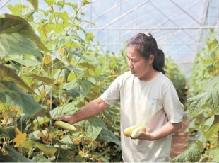 2024-05-205月13日,夏意渐浓。一大早,钦南区久隆镇黎屋村脱贫户梁娟就忙碌在久隆镇“菜篮子”蔬菜基地里,穿梭在绿意盎然的藤蔓中采摘新鲜饱满的黄瓜,朵朵黄花点缀其中,似在诉说丰收的喜悦。 棚中夏意浓 菜...