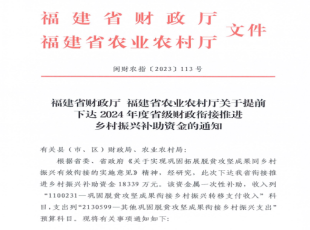 2024-04-08近日,福建省财政厅、福建省农业农村厅联合发布《关于提前下达2024年度省级财政衔接推进乡村振兴补助资金的通知》,明确支持培育和壮大特色优势产业。其中,建宁县伊家乡(水稻)入选农业产业强镇创建名...
