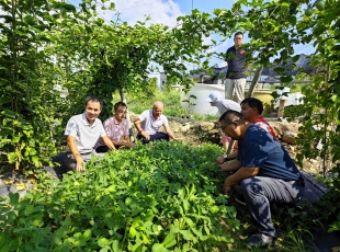 2025-09-15村干部跟村民一起查看钩藤。(通讯员 盖云峰 摄) 沐着秋日的晨光,钩藤爬满山坡。微风吹过,藤蔓轻摇,晃起阵阵绿浪。连日来,三江侗族自治县富禄苗族乡龙奋村的村民们穿梭在藤丛间,忙着采收嫩枝...