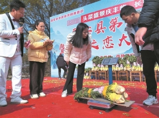 2025-01-02在“头菜擂台赛”环节,工作人员对参赛新鲜头菜进行称重 12月28日,融安县第二届头菜节暨“桔乡之恋 大洲月月谈”活动在长安镇大洲村举行。活动以头菜为媒,全方位展示非遗技艺,精心打造非遗美...