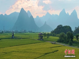 2025-10-2710月13日,在素有“桂北粮仓”美誉的广西柳州市柳城县古砦仫佬族乡,成片的稻谷逐步进入成熟期,与山脉、道路、村落构成一幅秀丽的田园画卷,吸引周边游客前来游玩。古砦仫佬族乡是全国唯一的仫佬族乡,...