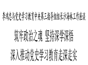 2022-03-03(记者 魏彧 于春沣)27日,市委书记、市委党史学习教育领导小组组长李鸿忠与党史学习教育中央第三指导组组长沙海林进行工作座谈。市领导周德睿参加。 沙海林反馈了中央指导组对我市党史学习教育的阶...
