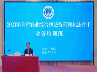 2024-10-3110月26日至27日,2024年山西省农业综合执法监管和执法骨干业务培训班在太原举办。农业农村部法规司副司长陈朱勇莅临授课,农业农村部管理干部学院汪明副研究员、河北省石家庄市农业综合行政执...