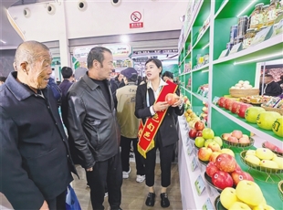 2024-10-28客商和群众在了解“咸阳马栏红”苹果产销情况 “‘咸阳马栏红’苹果展区早熟、中熟、晚熟的品种都有,主要向大家推介晚熟的富士、瑞阳、瑞雪苹果。瑞阳、瑞雪苹果以高产、优质、抗病、抗寒、耐储运等...