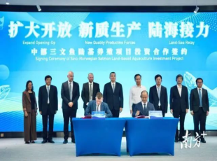 2024-09-09近日,“扩大开放 新质生产 陆海接力”中挪三文鱼陆基养殖项目投资合作签约仪式在汕尾举行。双方将在汕尾开展三文鱼陆基养殖项目全面合作,为现代化海洋牧场的高质量发展再添“新引擎”。 “汕尾是中国...