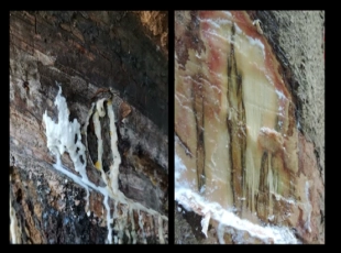 2024-08-26橡胶树割面条溃疡病预警及防控建议 一、割面条溃疡病的症状 割面条溃疡病能引起橡胶树割面树皮不同程度的溃烂。病害发生初期,在新割面上出现一至数条竖立的黑线,黑线多时,排列呈栅栏状,病灶深达皮层内...