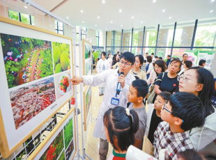 种质库工作人员带领小朋友和家长参观特色种质资源图片展。记者 胡妤雅 摄 在第8个中国农民丰收节来临之际,9月20日,国家云贵高原特色作物种质资源中期库(昆明)举办以“庆农业丰收 享美好生活”...