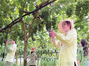 2024-07-17在阳峪镇田家坳村乾丰有机葡萄农民专业合作社,工人正在管护葡萄园。 在乾县阳峪镇阳峪村绿港苹果种植基地,工人正在给苹果树拉枝。 在乾县广袤的田畴沃野上,一片片农田纵横交错,不断孕...