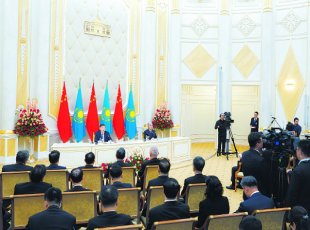 2024-07-08当地时间7月3日中午,国家主席习近平在阿斯塔纳总统府同哈萨克斯坦总统托卡耶夫会谈后共同会见记者。□新华社记者翟健岚摄 新华社阿斯塔纳7月3日电(记者杨依军 鲁金博)当地时间7月...