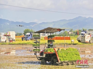 2025-10-27从广西浔郁平原的万顷稻田,到左江流域的连绵蔗海,再到丘陵山区的特色果园,传统“面朝黄土背朝天”的农耕场景,正迅速被“铁牛”驰骋、无人机巡弋、数据奔流的智慧图景所取代。 无人插秧机作业演示。(...