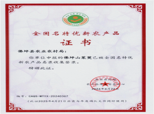 2024-05-08日前,佛坪山茱萸被国家农业农村部农产品质量安全中心授予全国名特优新农产品,并颁发了“全国名特优新农产品”证书,这是该县继佛坪土蜂蜜之后,第二个颁发证书的“全国名特优新农产品”。 佛坪县山...