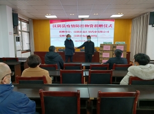 2022-01-07疫情无情人有情、爱心捐助暖人心。12月27日,汉阴县嘉汇铭药业有限公司负责人王景琨以捐赠的方式为县农业农村局送来防疫物资,县农业农村局局长蒋孝军同志接受捐赠。 蒋孝军表示,感谢嘉汇铭药业有...