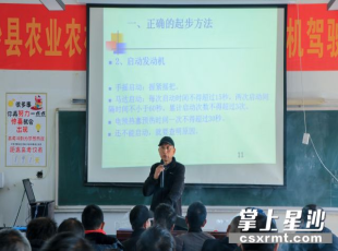 2021-12-17◎星沙时报记者 李松 “在启动农机发动机时,电预热塞预热时间一次不得超过30秒。” “在路过泥泞路段时,要加速通过,正确使用差速锁。” 12月1日,省农业广播电视学校长沙县分校(长沙县农业机...