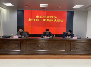 2021-12-0711月30日下午,市农业农村局召开新任职干部集体谈话会,全体新任职干部参会。局党委书记、局长江少文出席会议并讲话,局党委委员、市纪委市监委驻市农业农村局纪检监察组组长卢采盛对新任职干部进行集体...