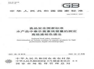 2022-04-19《水产品中泰乐菌素残留量的测定-高效液相色谱法》国家标准 农业农村部、国家卫健委、国家市场监管总局联合公告 标准起草单位及人员 近日,由陕西省水产研究与技术推广总...
