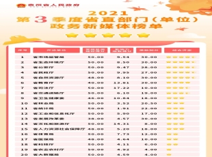 2021-10-19第三季度,省政务公开领导小组办公室委托第三方机构对我省9个市(州)政府,88个县(市、区、特区)政府,40家省有关部门和单位开设的微博、微信公众号等政务新媒体运维管理情况进行了监测评分,并...