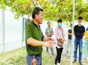 2021-09-17陶建敏教授在活动现场作讲解。王丽华摄 9月14日,南京市种子管理站主办的全市葡萄新品种观摩会在江宁区禄口街道成功社区的南京太田葡萄科技有限公司举办,示范推广优良葡萄新品种。记者获悉...