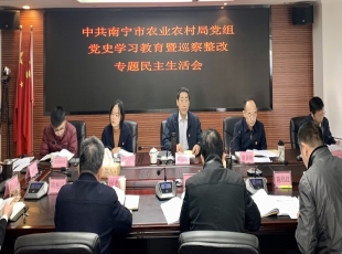 2022-02-252022年1月18日上午,南宁市农业农村局党组召开党史学习教育暨巡察整改专题民主生活会。市政府党组成员、副市长刘宗晓出席会议并作讲话。市委巡察办副主任陈贵业,市委组织部干部四科...