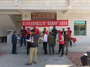 2021-12-072021年12月3日,正值第八个“国家宪法日”和第四个“宪法宣传周”到来之际,湛江市农业农村局联合雷州市沈塘镇政府、沈塘村委会在后山村开展“宪法进农村”宣传活动。 “宪法进农村”活动现场 ...