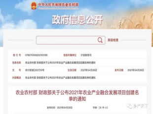 2021-09-17日前,农业农村部、财政部发布关于公布2021年农业产业融合发展项目创建名单的通知,决定2021年度批准创建50个国家现代农业产业园、50个优势特色产业集群和298个农业产业强镇,高邮市龙虬...