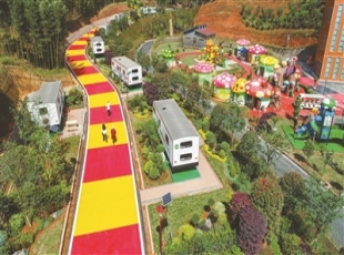 2021-09-17图为4月29日拍摄的位于宜宾市高县胜天镇红岩山风景区的房车露营地。(庄歌尔 摄) 今年以来,高县在乡村振兴战略中按照“农业强、农村美、农民富”的发展目标,因地制宜在产业振兴、文化振兴、生...