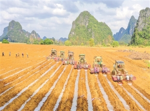 2021-09-16近年来,广西扎实推进糖业降本增效三年行动计划,加快推动糖业“二次创业”。图为龙州县逐卜乡弄岗村糖料蔗“双高”基地机械化种植场景。李建宁/摄 把农民增收产业做得更实更强;让乡村道路更顺畅、饮水...