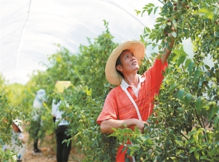 “这枣清甜可口,好吃,我要多买点送给亲朋好友。”9月26日,在富川瑶族自治县富阳镇大深洞村珍珠枣园,游客莫桂兰一边采摘一边说。 果园主人卢国庆介绍,他从湖南衡阳引种珍珠枣,摸索5年,终于掌握了种...