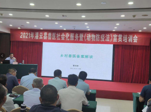 6月24日,灌云县在伊山镇宾馆四楼会议室举行兽医社会化服务暨《动物防疫法》宣传贯彻培训会,特邀市农业农村局畜牧兽医处曹洪波处长与市畜牧兽医站董燕萍副站长(高级兽医师)来培训会授...