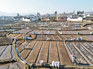 2022-03-21入春以来,全省各地抢抓节令积极开展春耕春管。图为大理白族自治州剑川县甸南镇兴水村群众在田间地头蓄肥土、平整秧田、育秧苗。(记者:黄兴能) ...