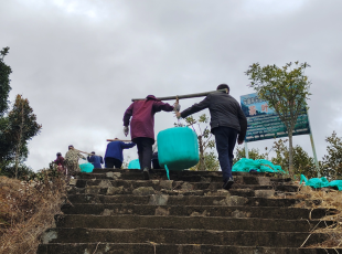 2022-01-13走进安徽云林茶业公司茶园基地,山脚下堆满了蓝色的包裹,工人们两人一组,将蓝色包裹抬上茶山。走上茶山,一股酒糟香扑鼻而来,一番探寻,原来是发酵过的秸秆散发的香味。 为什么要把秸秆搬上山?云...