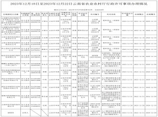2024-04-08相关附件: 2023年12月18日至2023年12月22日云南省农业农村厅行政许可事项办理情况 (拟稿人:李超 审核人:付大森)原文链接:https://nync.yn.gov.cn/...
