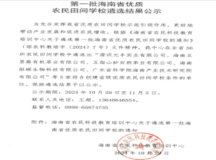 2024-10-31根据《海南省农业农村厅关于印发2024年海南省支持种业高质量发展奖补资金申报指南的通知》(琼农字〔2024〕225号),现将两家申报主体的审核结果予以补充公示。公示期为2024年10月31...