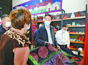 2021-10-199月8日,自治区党委书记陈全国在乌鲁木齐县调研。这是陈全国来到位于水西沟冰雪运动特色小镇的乌鲁木齐县胡拉莱民族手工艺农民专业合作社,仔细察看刺绣产品,详细了解产品销路和收益等情况。□石榴云...
