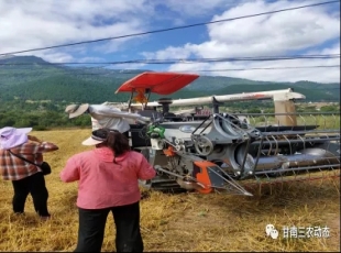 2021-09-17当前,正值我州粮食夏收黄金时节,为充分发挥农业机械在三夏生产中的主力军作用,确保小麦颗粒归仓,我州迭部县农机化服务中心领导带领农机人员深入田间地头开展“三夏”农机生产服务和指导工作。 农...