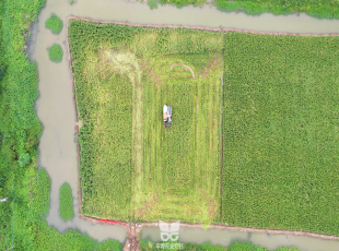 2021-09-17洪梅水稻生产示范区俯瞰 洪梅水稻生产示范区,联合收割机正在收割枣红糯。 枣红糯是水乡一大特色农产品。改革开放之前,在东莞水乡片洪梅、高埗等镇区,每家每户都会在自家田头的深水区...