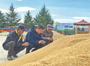 滑子菇缀满菌包。 汤原黑木耳迎来丰收。 新建村党支部书记马英(中)与村民一起查看水稻收成情况。 合力村党支部书记张健利。 福隆村党支部书记何平。 北靠山村党支部书记李相林检查木耳长势...
