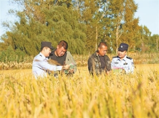 2025-10-09民警深入田间地头进行涉农反诈宣传。 秋风掠过黑土,稻浪翻滚成金,玉米昂首如炬,大豆摇响铃铛。金秋九月,在这片承载着国家粮食安全“压舱石”使命的土地上,丰收的画卷正徐徐铺展。为守护这份耕耘的硕...