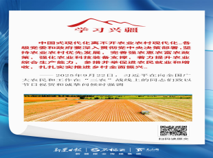 2025-10-27中国式现代化离不开农业农村现代化。各级党委和政府要深入贯彻党中央决策部署,坚持农业农村优先发展,完善强农惠农富农政策,强化农业科技装备支撑,着力提升农业综合生产能力,多措并举促进农民就业和...