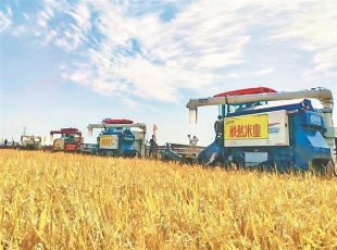 2025-09-28水稻收获现场。记者 梁金池摄 黑龙江的田野褪去翠绿换上金黄,各地田垄间一片颗粒归仓、农人欢颜的丰收景象。记者从省农业农村厅了解到,截至24日,我省玉米、水稻、大豆三大主粮作物成熟期提...