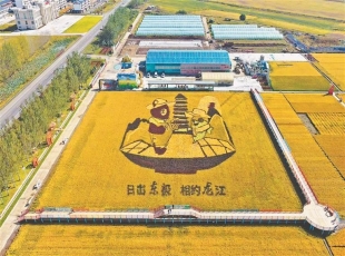 2025-09-22玖成合作社水稻公园稻田画。李拥军摄 金秋时节,走进东极抚远,稻浪翻滚,瓜果飘香,游人如织……一派丰收繁荣景象。 2016年5月,习近平总书记来到抚远玖成合作社,察看机械插秧,了解智能催...